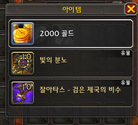2000(2천)골드와 유물무기 2개가 들어있습니다.