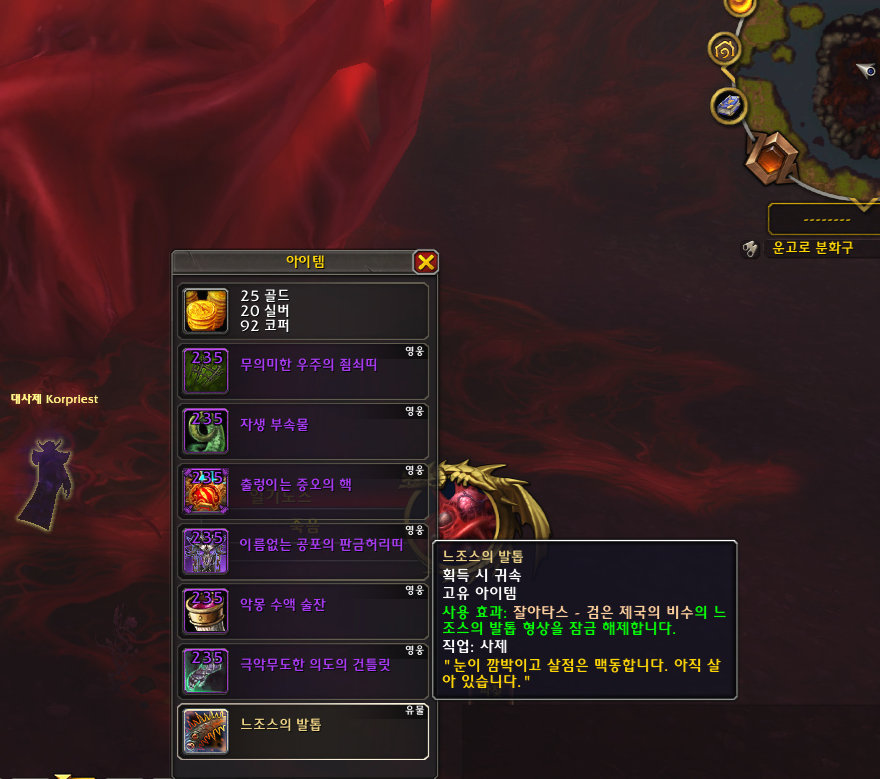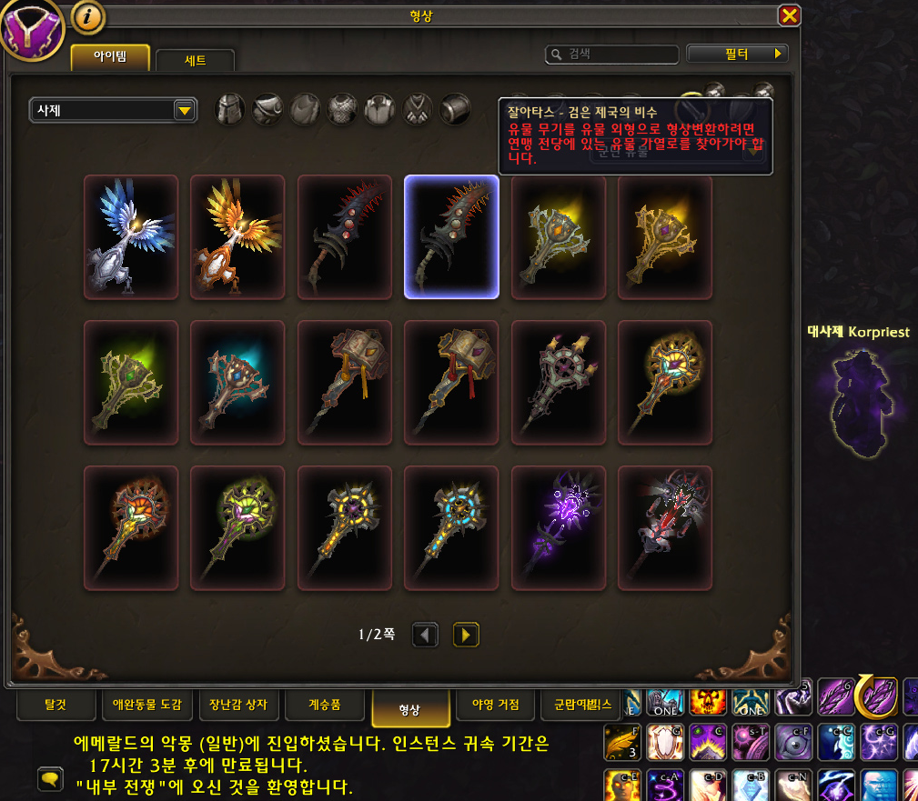 신성 사제 히든 형상을 획득하고나서 암흑 사제(암사) 히든을 위해 발샤라 지역에 있는 공격대 던전 '에메랄드의 악몽'에 갔습니다.