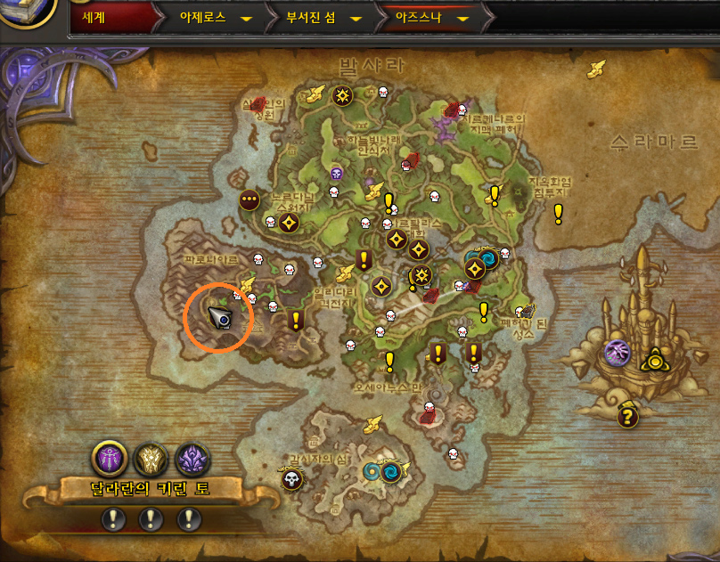 사냥터 위치는 아래 아즈스나의 오렌지색 동그라미 위치입니다.