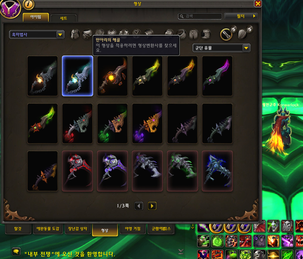 '최초의 깨우는 자의 얼굴' 악마 흑마법사 유물 무기 히든 형상템 획득!!