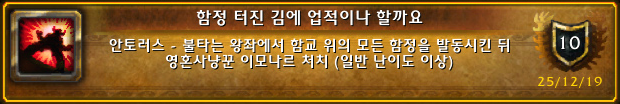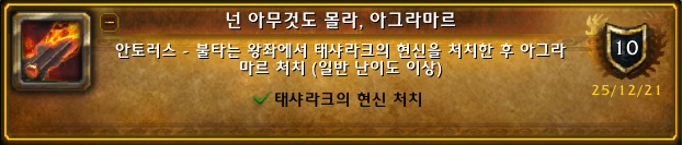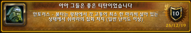 작년 8월에 '숯사냥개'를, 12월엔 '우르줄' 탈것을 획득하면서 '안토러스-불타는 왕좌' 공격대 던전의 완전한 졸업인 '영예의 공격대원' 업적 보상 탈것 '어스름사냥개'를 언젠가 획득하기 위해 도전하려고 마음 먹었습니다.