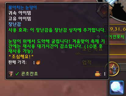 겨울맞이 축제 기간은 30초 후 재사용 가능한 것을 확인했습니다.