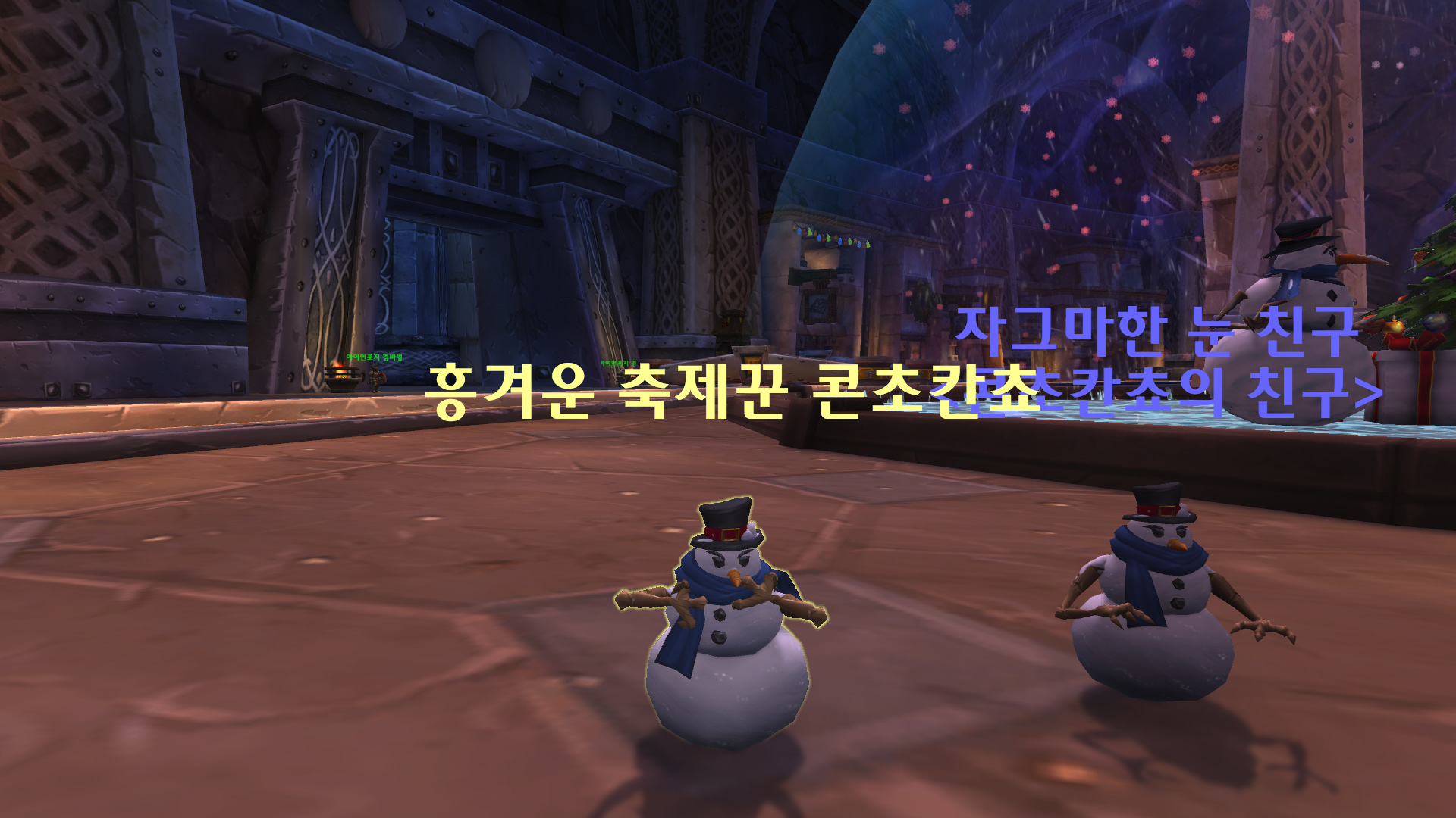 와우 겨울맞이 축제엔 매년 새로운 장난감을 선물로 얻을 수 있습니다. 올해는 눈사람 변신 장난감이라고 합니다. '겨울맞이 축제 선물'을 받으니 위업을 달성했습니다. [눈덩이 싸움!] 위업 달