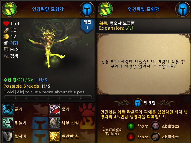 '엉겅퀴잎 모험가' 애완동물 획득 및 수집 완료,