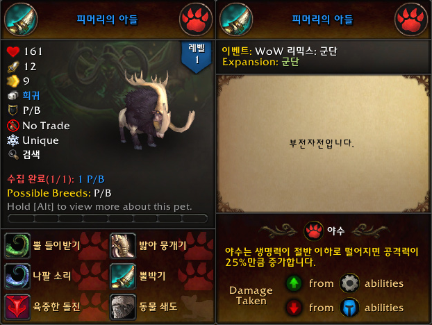 '반항하는 임프' 애완동물 획득 및 수집 완료,