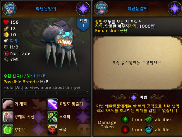 군단리믹스 무한의 시장에 있는 '호로스<희귀 수집품>'한테서 애완동물들을 구입했습니다.