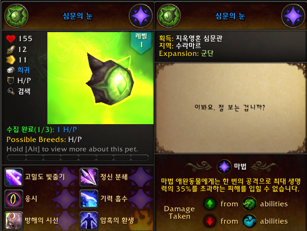 '심문의 눈' 애완동물 획득 및 수집 완료,