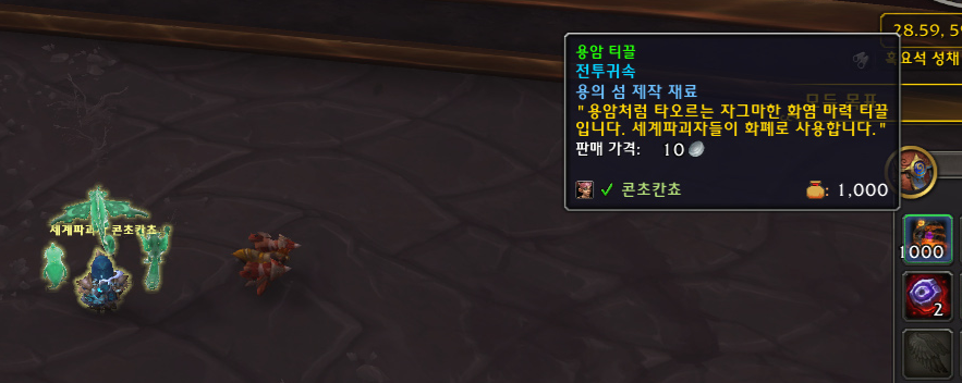 이걸 사용하면 이틀 동안 버프가 지속되는데, 이 기간 동안 흑요석 성채에 있는 몹들을 쓰러뜨리면 '용암 티끌'을 드랍한다고 합니다.