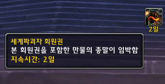 버프: 본 회원권을 포함한 만물의 종말이 임박함(지속시간: 2일).
