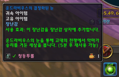 사용 효과: 운드라비우스의 눈을 통해 고대의 전쟁에서 악마가 승리를 거둔 세상을 봅니다.(5분 후 재사용 가능)