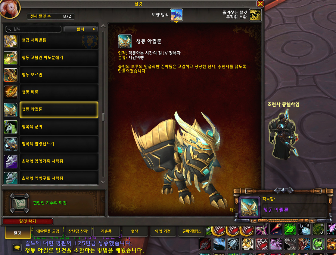 '청동 아퀼론' 하늘비행 탈것 획득 및 수집 완료!!