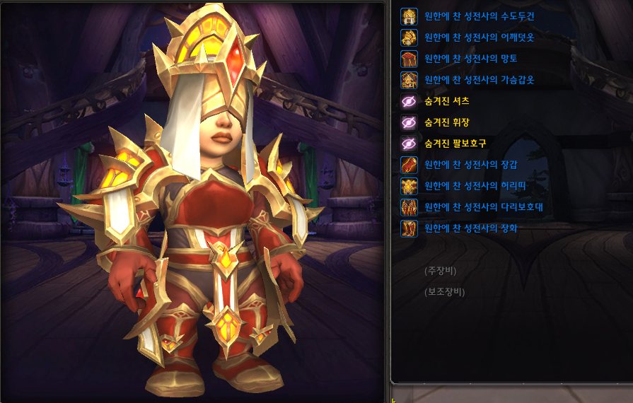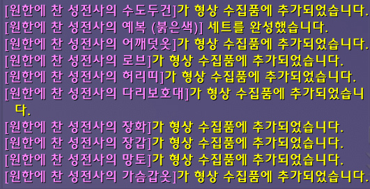 '원한에 찬 성전사의 예복(붉은색)' 형상 세트 획득 및 수집 완료!!