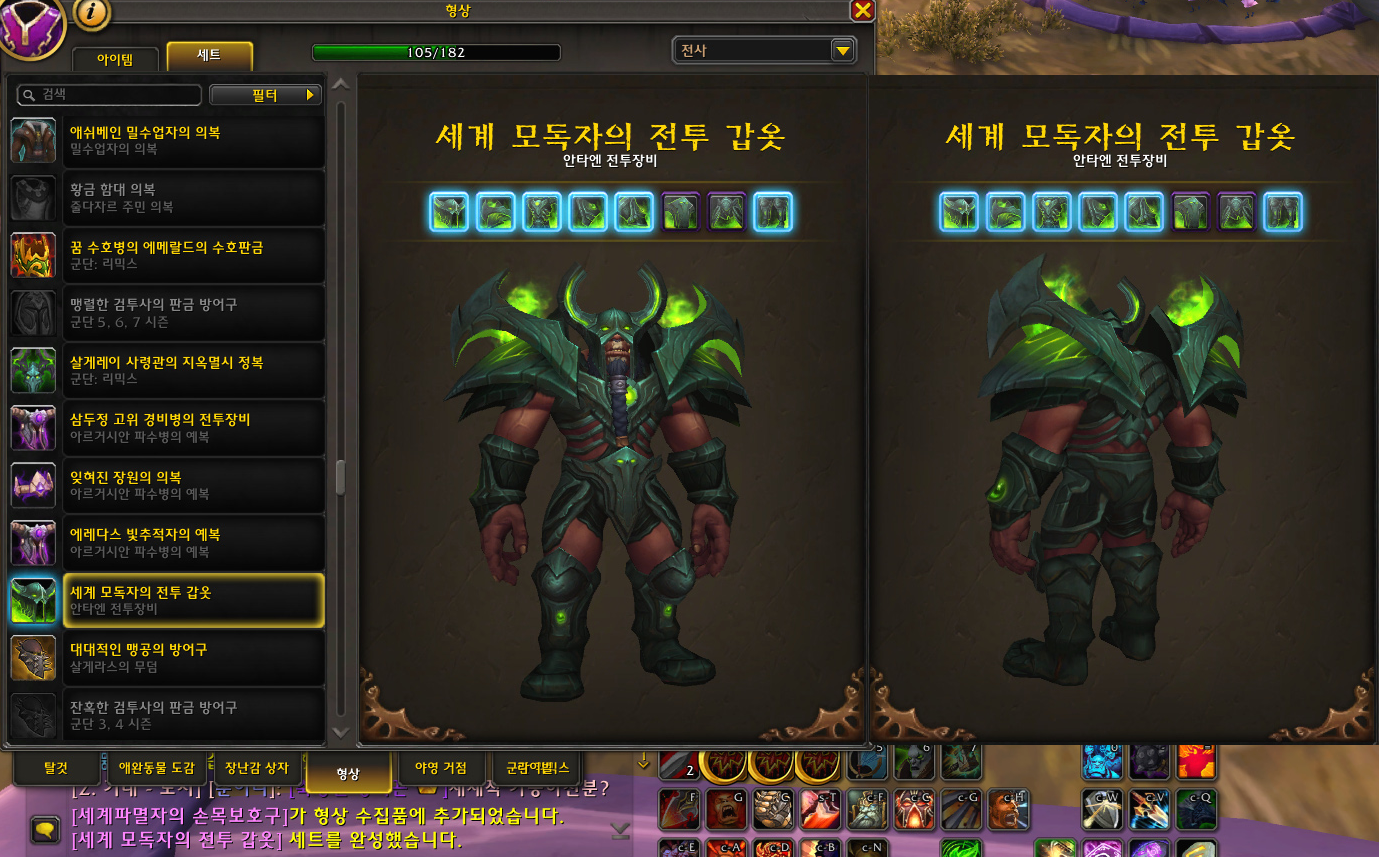 '세계 모독자의 전투 갑옷' 형상 세트 획득 및 수집 완료!!