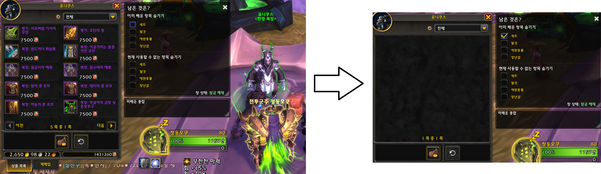 군단리믹스 덕분에 본섭에서 형상 수집 작업을 안 해도 되어서 너무 좋습니다!😍😍