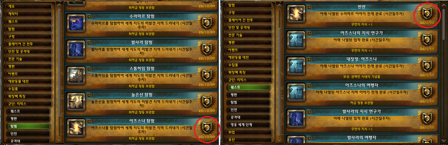 25년 10월 9일 지역 탐험 업적들을 완료한 것을 시작해서