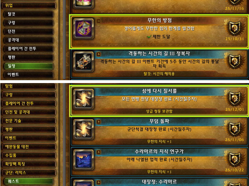 | 와우 군단리믹스 위업 [지옥불정령을 동반한 흐림] 획득! (0) | 2026.01.17 |