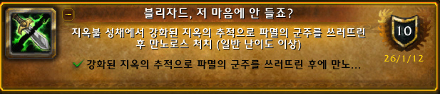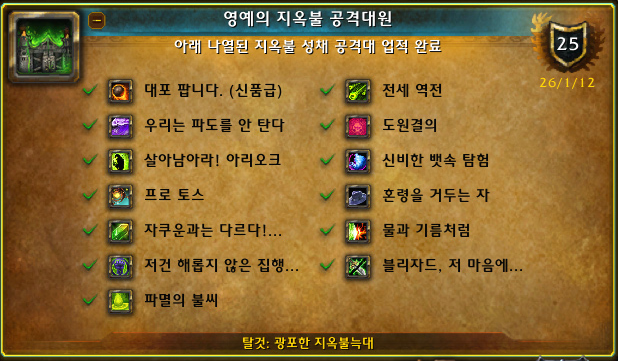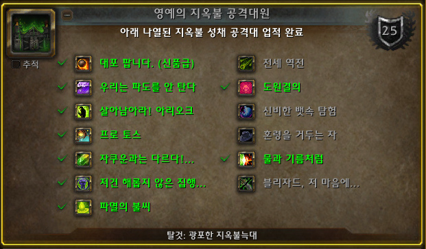 아래 나열된 지옥불 성채 공격대 업적 완료.