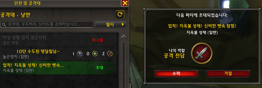 오늘 검은사원 시간여행 레이드를 가볼 생각으로 낭만 공격대 모집 목록을 확인했는데, '영예의 지옥불 공격대원' 업적에서 솔플 불가능한 업적들을 도움 원하는 분의 모집글을 발견했습니다.