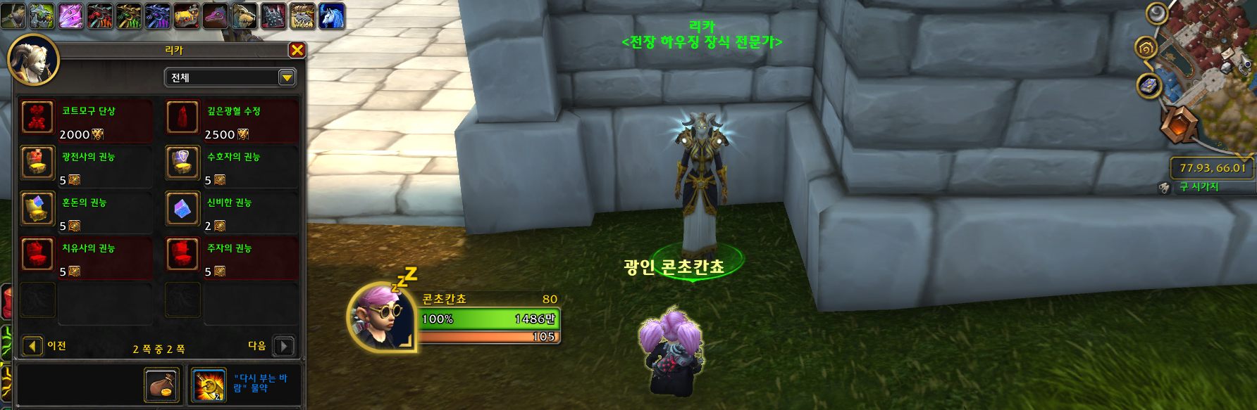 스톰윈드 구 시가지의 아래 검정색 동그라미 위치에 'Riica 리카<전장 하우징 장식 전문가>'가 있습니다.