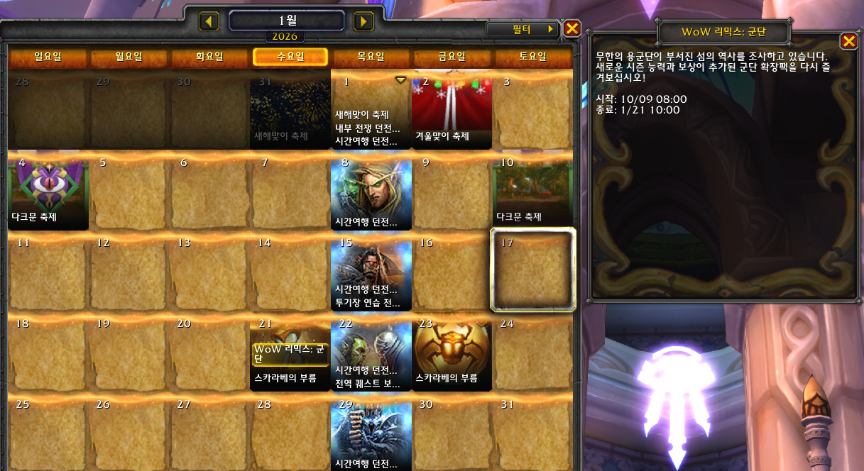 | 26년 1월 21일 와우 리믹스: 군단(군단리믹스) 종료! (3) | 2026.01.21 |