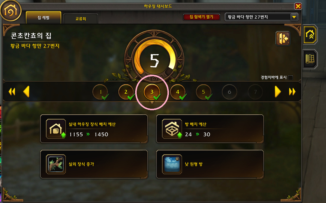 이번 소한밤(=한밤 사전패치) 패치가 적용되면서 드디어 하우징 3레벨, 5레벨 보상 방을 획득했습니다.