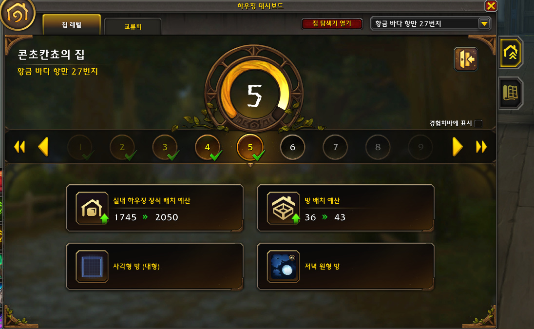 하우징 5레벨이 되면 획득할 수 있는 방입니다.