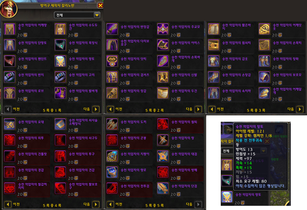121템렙의 챔피언 1/8 장비템들을 판매하고 있습니다.