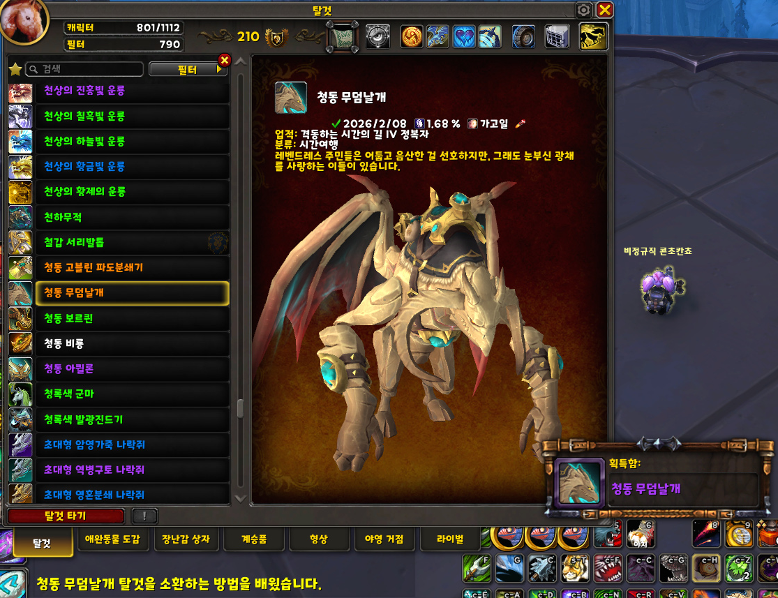 | '청동 야생룡'(와우 '타레돈의 탈것 교환권' 퀘 보상 또는 시간여행 상인 판매 탈것) (0) | 2026.02.08 |