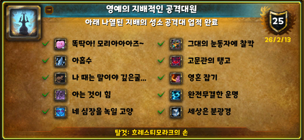 업적-공격대: 영예의 지배적인 공격대원 공략 가이드(월드오브워크래프트)