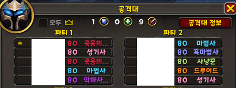 공격대 10명 모여서 시작하였습니다.