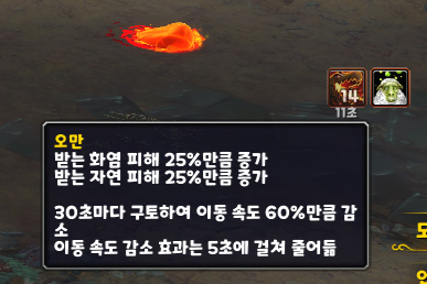오만: 받는 화염, 자연 피해 25%만큼 증가.