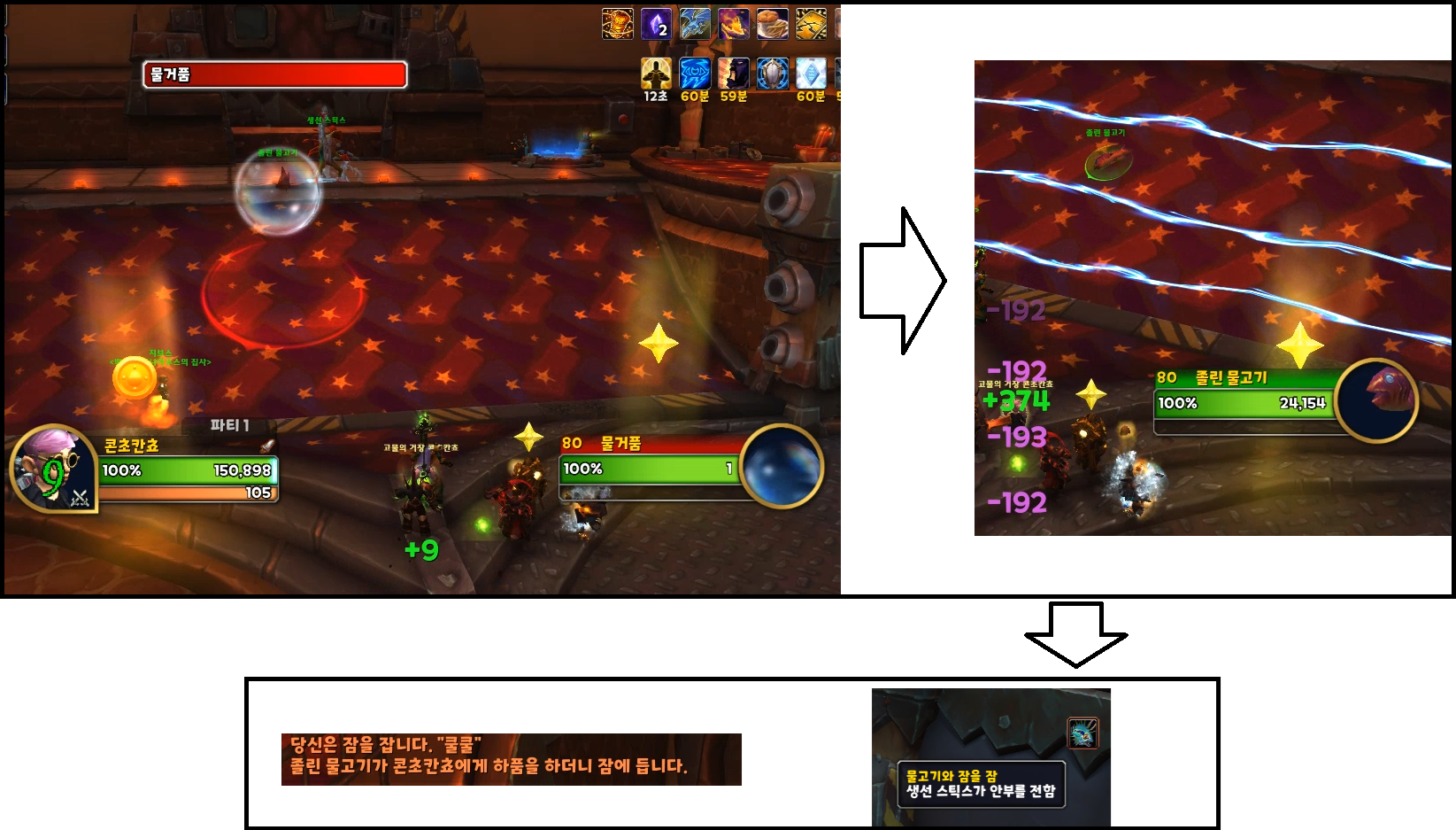 그러면 '물고기와 잠을 잠: 생선 스틱스가 안부를 전함.'이라는 디버프가 생깁니다.