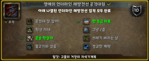 아래 나열된 언더마인 해방전선 업적 모두 완료.