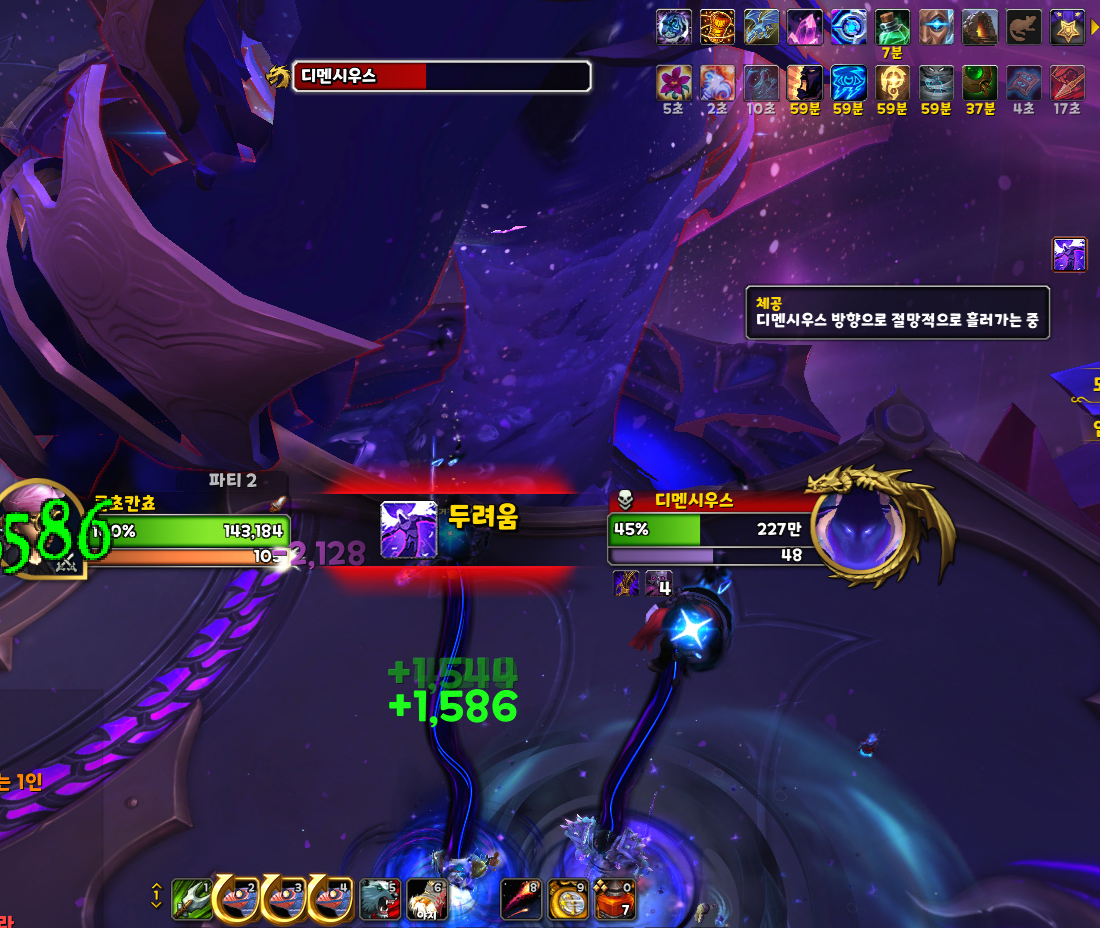 막넴 '디멘시우스'의 업적 진행은 1페이즈에서만 할 수 있습니다. '중력 역전'이란 기술을 모두 겪어야 된다고 합니다.