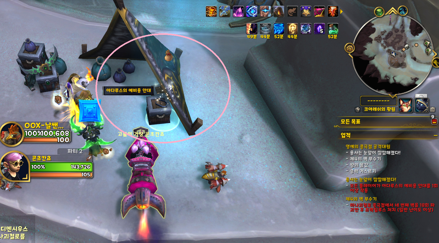 바로 사용하면 안 되고 전투 시작과 동시에 한 파티가 먼저 사용합니다.(공격대장님께서 정해주심)