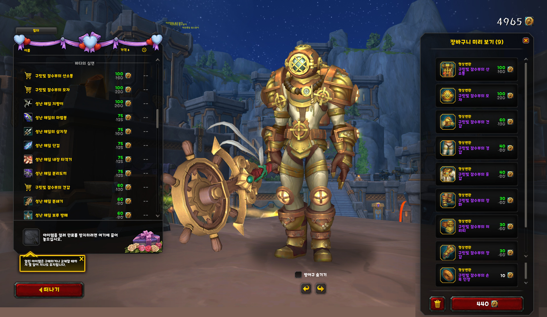 와우 24년 7월 교역소 상품 형상세트 '복장: 깊은 심해 잠수복'