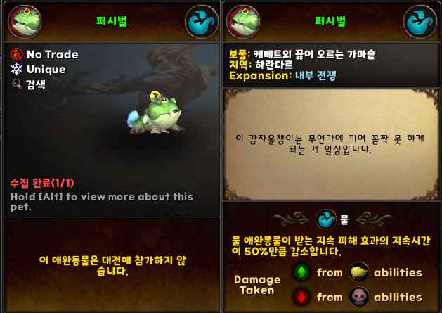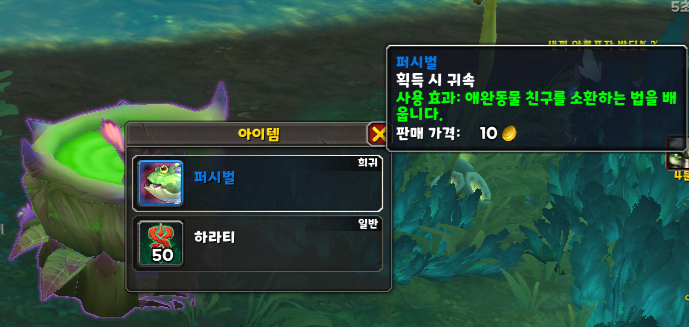 '퍼시벌' 비전투 애완동물 획득 및 수집 완료!!