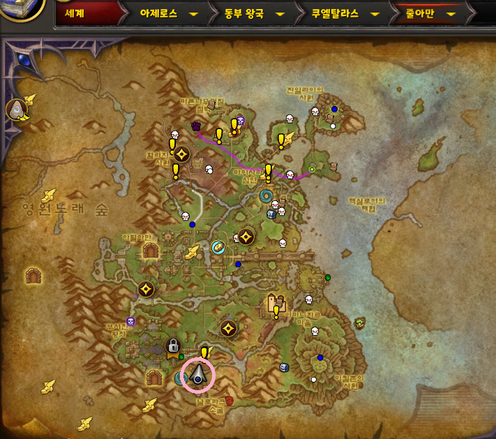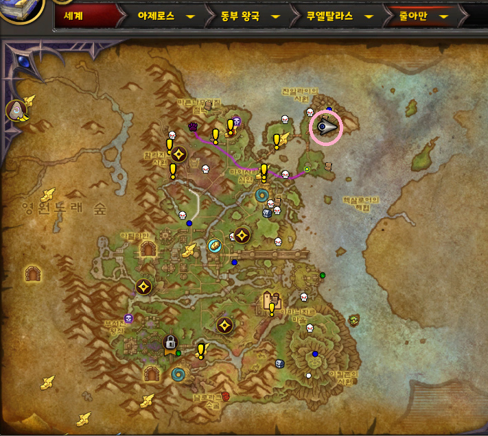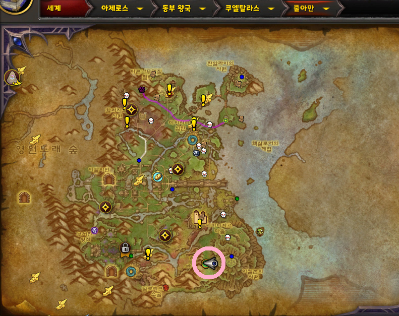 와우 한밤 확장팩의 줄아만 지역에 있는 보물들 중에 탈것을 획득할 수 있다는 정보를 보고 획득하러 갔습니다.