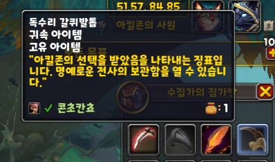 '아킬존의 간택자'를 잡고 '독수리 갈퀴발톱'을 먹습니다.