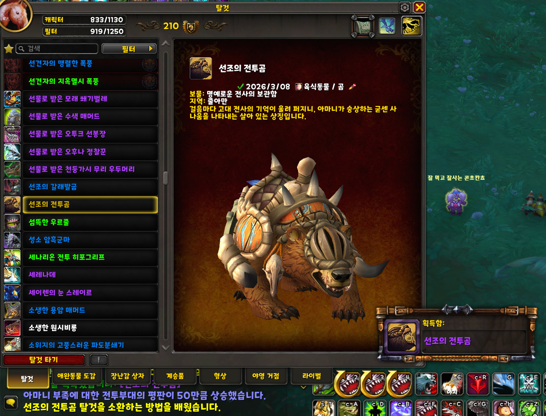 '선조의 전투곰' 지상 탈것 획득 및 수집 완료!!