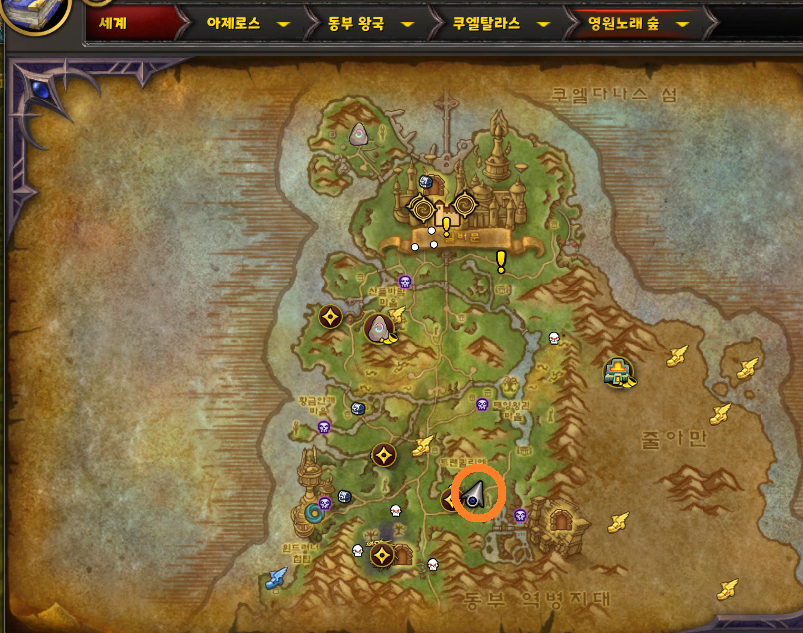tomtom 애드온이 설치되어 있다면 좌표들을 복사해서 게임 내 채팅에 /ttpaste 입력하면 뜨는 창에 붙여넣은 후 paste 버튼을 누르면 영원노래 숲 지도에 표시됩니다.