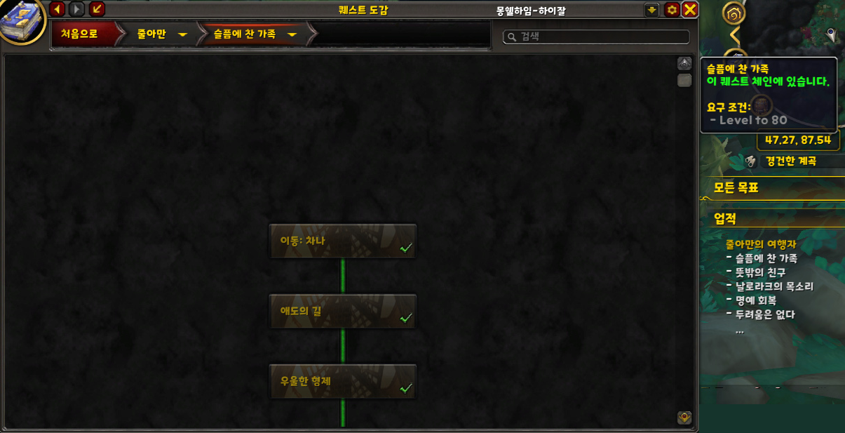 와우 한밤 확장팩의 줄아만 지역에서 하는 사이드 퀘스트 중에 애완동물을 보상으로 주는 퀘스트가 있습니다.