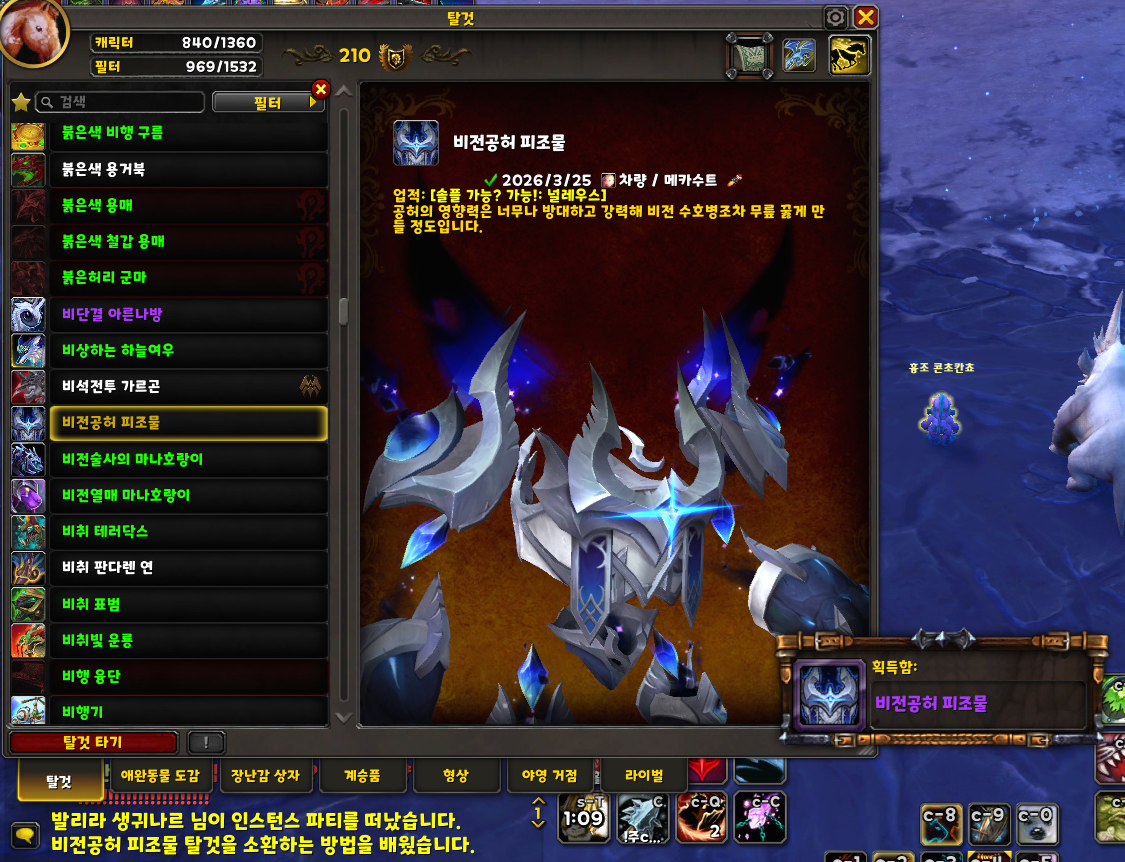 '비전공허 피조물' 하늘비행 탈것 획득 및 수집 완료!!