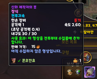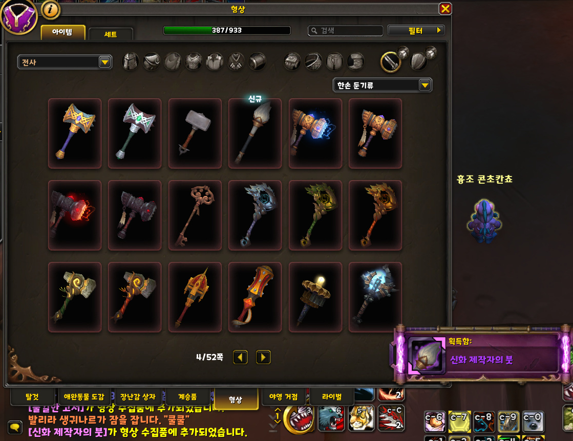 '신화 제작자의 붓' 한손 둔기 형상 획득 및 수집 완료!!