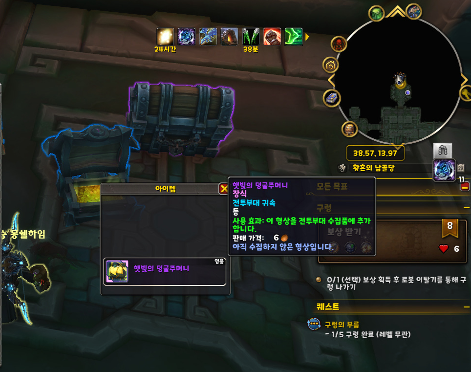 부캐로 8단 풍요로운 구렁을 돌고 보물 상자에서 형상템을 획득했습니다.