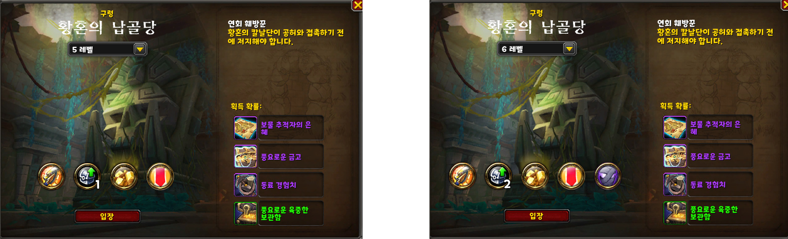 본캐, 부캐로 풍요로운 구렁을 돌고 구렁 5레벨을 달성했습니다.