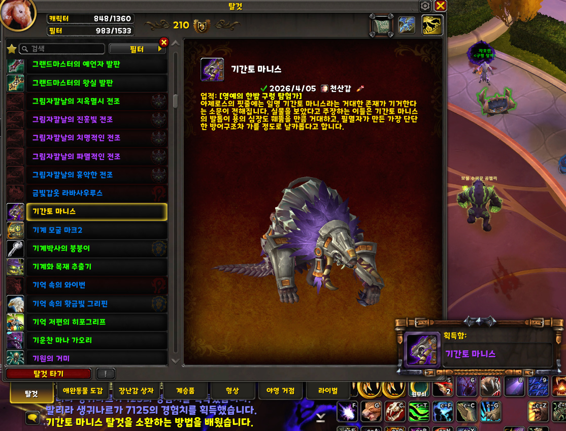 '마른나무껍질 천산갑'(와우 한밤 줄아만 지역 희귀몹 확률 드랍 탈것)