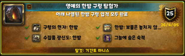 아래 나열된 한밤 구렁 업적 모두 완료.