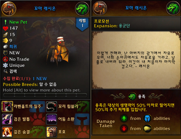 대격변 클래식 영웅 꾸러미를 구입하면 획득할 수 있는 애완동물입니다.