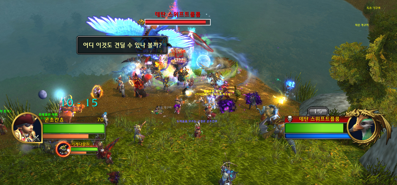 데탄 스위프트플룸이 등장하면서 전투가 시작됩니다.